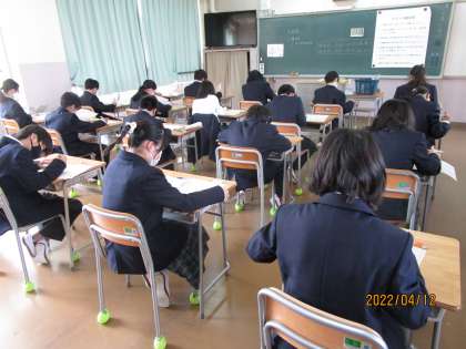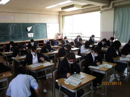 1年生が春休みに中学校から出されていた宿題の確認テストを受けました。
