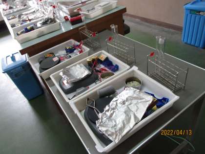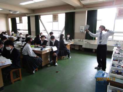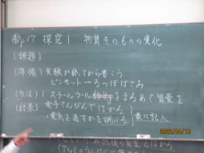 今日の理科の授業はさっそく実験です。理科の先生が「自動量り」の使い方を説明しているところでした。