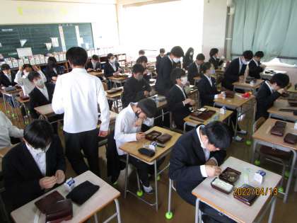 1枚めは廊下でおかわりをする人が集まって相談しているところです。3枚めはおかずとご飯のお代わりをしたい人が先生といんじゃんをしているところです。