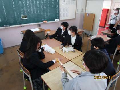 このクラスも学級目標を考えていました。担任の先生の名前を入れて、素敵な学級目標を考えている班がありました。あとで、その先生に校長から「先生、あんな風に言われると担任冥利に尽きますね。うれしかったでしょ?」と聞くと「はい。でも、その班の生徒が担任の先生の名前をこんな風に使うと、失礼ではありませんか。と言ってくる生徒もいました。」とのこと。これもまた、まじめな人柄が伝わってくる素敵なエピソードですね。