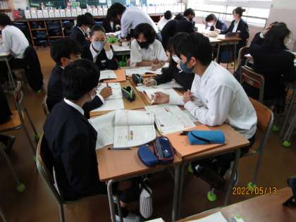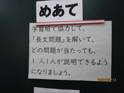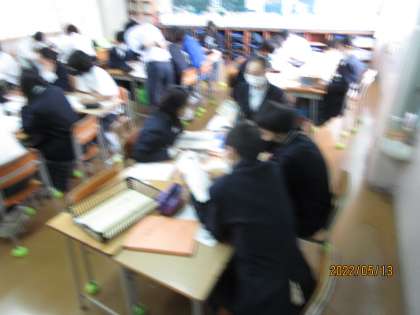 先ほどの続きです。集中度が高いと思って、黒板の「ねらい」を読むとなるほどと思いました。また、そのねらいを素直に達成しようとがんばる生徒がすばらしい。