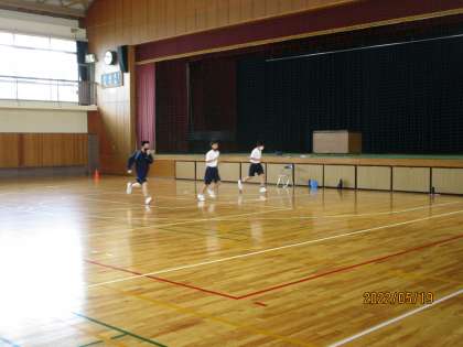 シャトルランです。男女ともよくがんばっています。