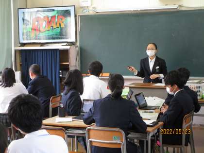 班の代表者の評価を書きこみ、その次にボランティア(志願者)の発表が続きました。これもいいですね。自分から進んでの発表です。