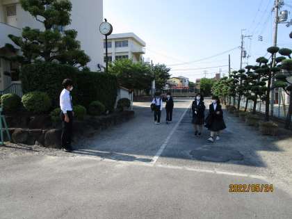 今日は、生徒集会があり、生徒会役員さんたちは集会準備でいませんでした。シンプルな登校風景です。