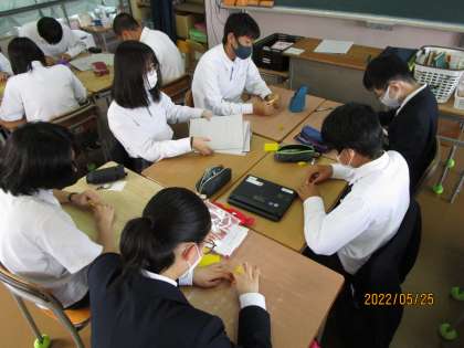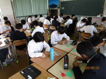 修学旅行で沖縄平和祈念資料館に奉納する折り鶴を折っていました。