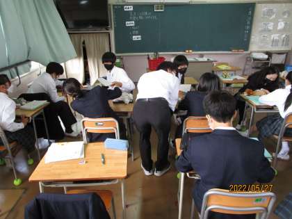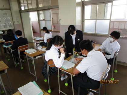 正負の数をこの授業で学び終えます。今日は応用問題です。初めの問題を解き、考え方の確認をスクランブル(自由に動くこと)で行っています。いい感じです。うれしくなります。