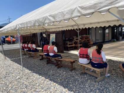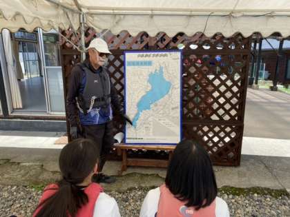 このグループはヨットを待つ間、びわこについての話を聞いています。