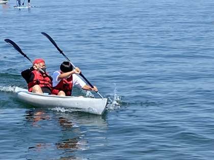 アンカーのカヤックがとうとうゴールしました。2組、続いて1組です。