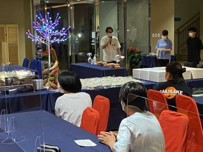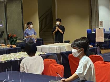 遅くなりましたが、夕食前にホテル入館式を行いました。担当の生徒から、このあと気をつけてほしいことを四つ話していました。大声を出さない。部屋の行き来はないように、トランプなとのくつろぎタイムはほぼないこと、など説明していました。とても、分かりやすかったです。ありがとう。