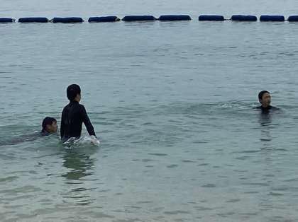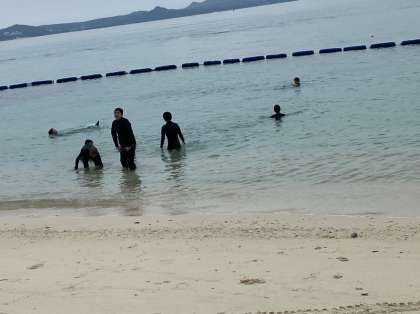 午前中はマリンスポーツです。海水浴、シュノーケリング、バナナボートと楽しみました。