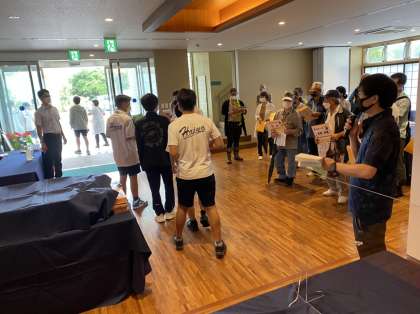 あいさつが終わり、民家さんと一緒にその家まで移動するところです。