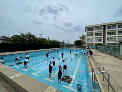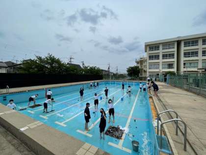 6月11日土曜日に1年生有志と卓球部の人たち、そして、陸上部の人たちが北条中学校のプール掃除をしてくれました。ありがとう。