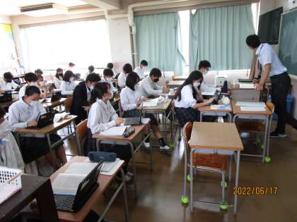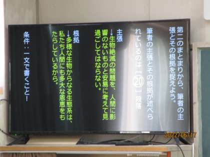 「絶滅の意味」という教材文から学びます。タブレットを活用しての授業です。