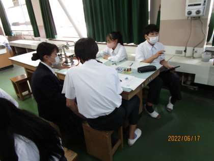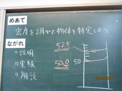 理科の醍醐味はやはり実験ですね。密度を調べて物質を特定しようという実験です。