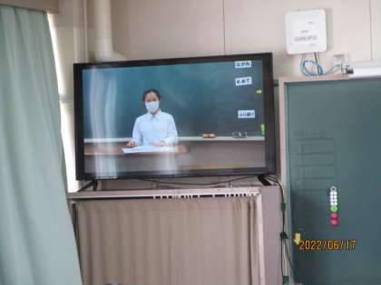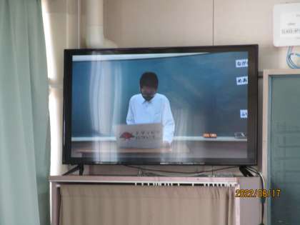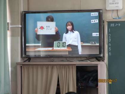 今日は19日ということで、食育の日だそうです。生活委員さんが前日までに食育クイズを動画撮影してくれました。それを見ながら黙食で食べています。