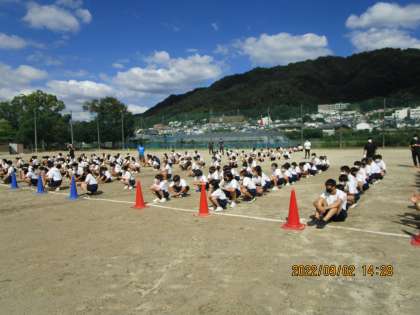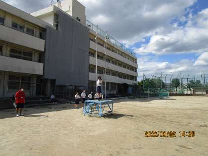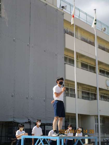 体育委員長が体育祭のテーマ「がちる」を発表しました。よくがんばります。