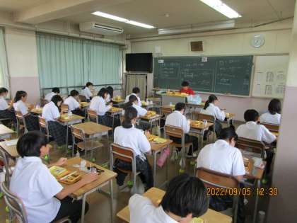 今日は午前中には教室を回ることができませんでした。1年生の給食風景です。