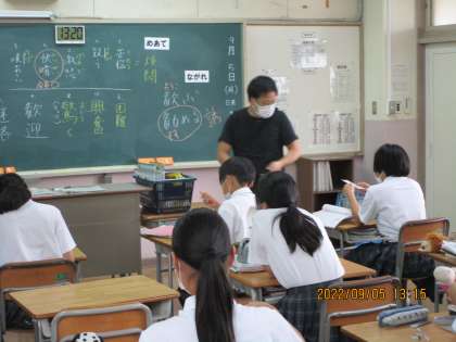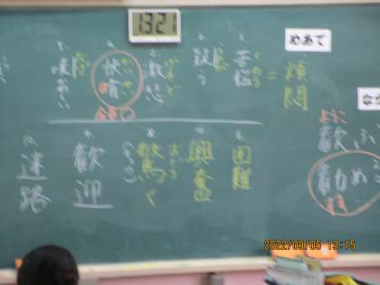 漢字テストを終え、細かな確認をしていました。また、この先生は漢字検定に熱心で、前任校より積極的に取り組み、大きな成果を挙げています。学校で団体で受けると1000円安く受けられるうえに、電車賃もいりませんと言っていました。お得ー。