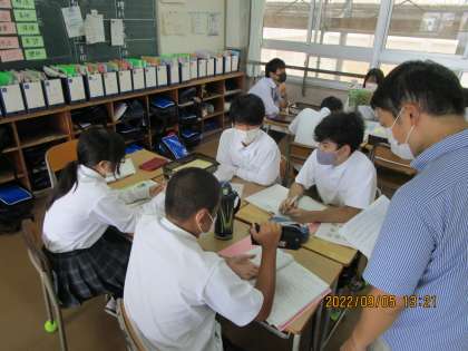 must と must notの違いについて勉強していました。学習班になって考えているところを写真に撮りました。