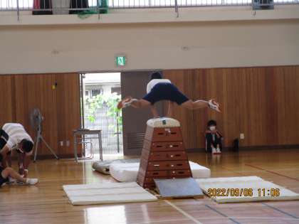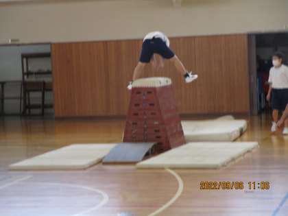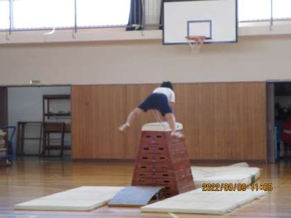 今朝、朝のあいさつ運動で下足室付近にいると、2年生のある生徒が「校長先生。3限の体育、ぼく、跳び箱をがんばっているから見に来てください。」と言うので、見にいきました。苦手な人もいましたが、みんながんばっていました。すばらしい。