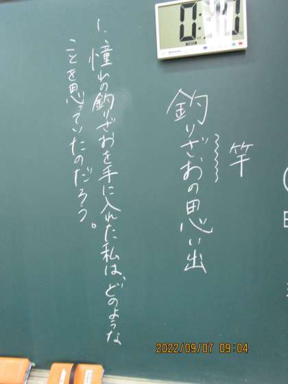 「釣り竿」という言葉が今日の教材文の名前に入っていたので、授業始めに先生の方から、子どものときに釣りにいったことがあったと話していました。ここから授業です。