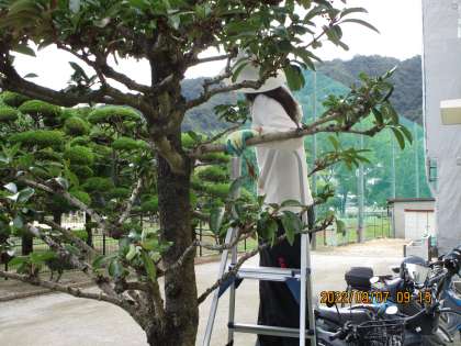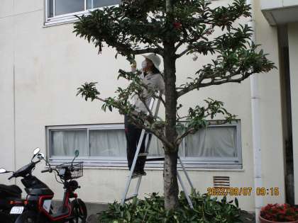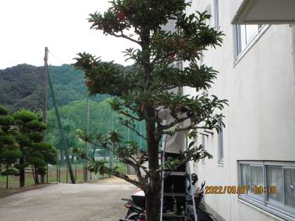 校務員さんが体育祭も近いし、玄関の樹をきれいに選定していました。ありがとうございます。