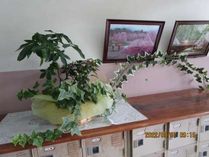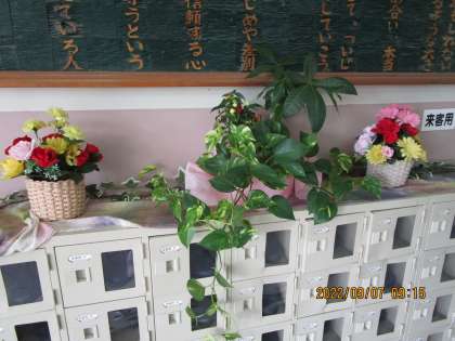 こちらも校務員さんの真心こもった作品です。うまく言えないのですが、美しい花、木々、環境、ものすごく大事だと思うんです。ありがとうございます。