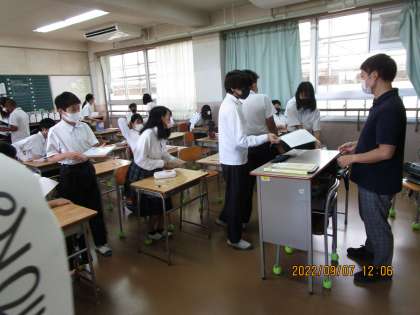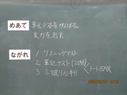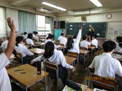 今日は単元テストを実施したようです。先生が「単元テスト、よくできたと思う人は手を挙げて。」と言っているときに写真を撮りました。