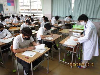 今日は単元テストを実施しています。黙々と問題に向かっていました。