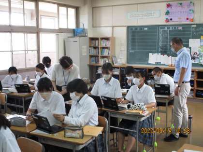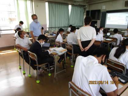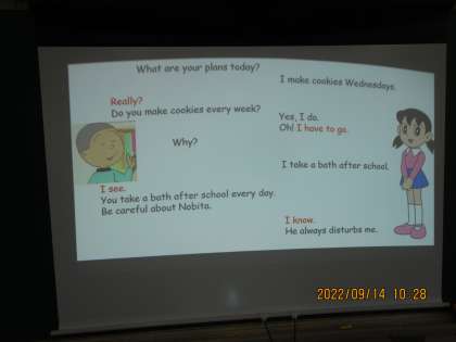 ペアを組んで英語で会話練習をしていました。