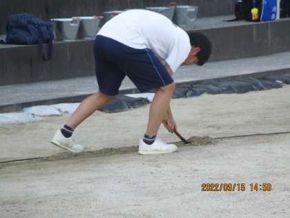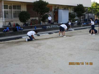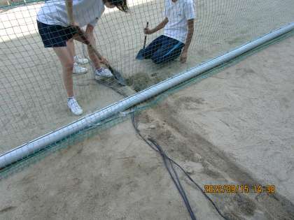 報道委員が放送設備(コード)を埋め込む溝を掘っています。ありがとう。