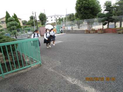 登校途中に雨が降ってきました。しかも、涼しいので雨に濡れると少し寒いです。