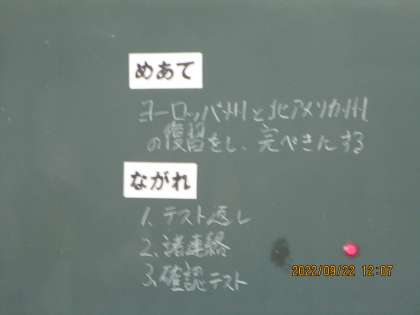 ヨーロッパ州について勉強しています。単元テストに関する説明をしていました。