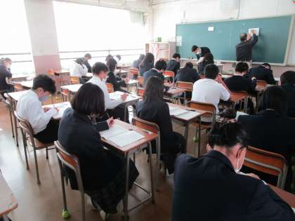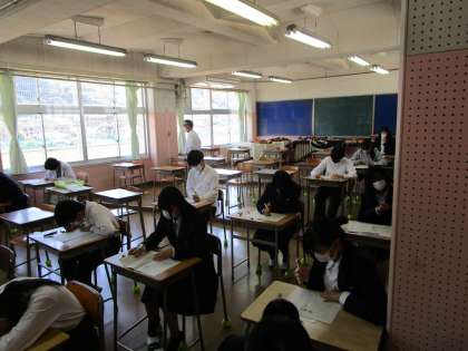 北中トライは全生徒がいずれかの教科のテストを受けます。今回の成績の方が良ければそれを正式な評価とします。下がった場合は、前回の良い方の結果を採用します。