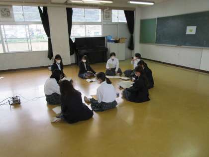 グループに分かれて、相談しながら進めています。生徒が自分たちで進めようとする動きが見られます。すばらしい。やらされててはだめです。