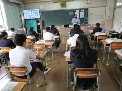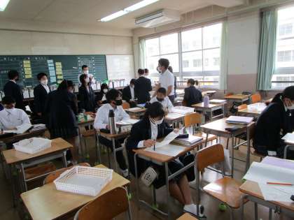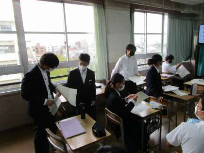 この授業も充実していました。自分の作文を5人のクラスメイトに読んでもらい、助言をもらい、また、自分もクラスメイトの作文を読み、いいところを参考にします。伸びますね。