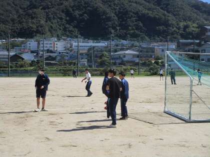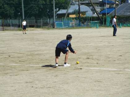 柔らかいボールをつかって野球のようなスポーツを練習し始めました。今日は、キャッチボールからです。