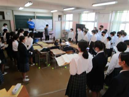1年生は合唱です。1年生も本当にすばらしかったです。音楽の時間にほとんど練習できていない曲も「うまくいかないけど。1回歌ってみよう。」と学年の先生が言いつつ始まったその曲が、なんと大きな声で歌えているではありませんか。終わって、すばらしいと叫んでしまいました。魂がこもっています。