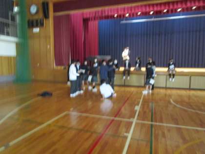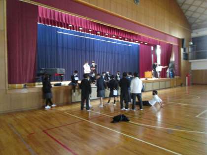 体育館での舞台練習が終わり、先生から「良かったです。」と、ほめられていました。すばらしい。