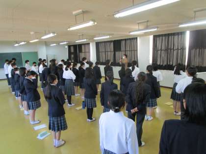 1年は集会室で合唱の練習です。練習が進むほど、乗り越えたいハードルも高くなっているようです。