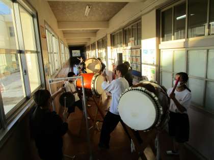人権クラブのたいこ練習です。部員も他のクラブに所属していたり、文化祭実行委員だったりと、なかなか全員そろいませんが、一生懸命やっています。すばらしい。