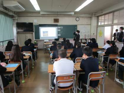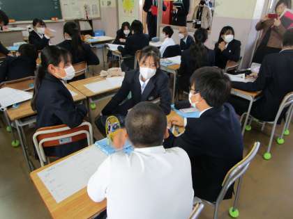 昨日の記事です。1年生2組で人権教育公開研が行われました。研究授業です。大東市教育委員会、市内の数名の先生も来られていました。