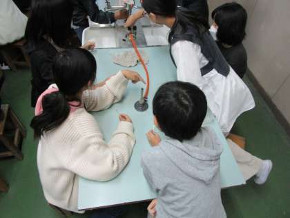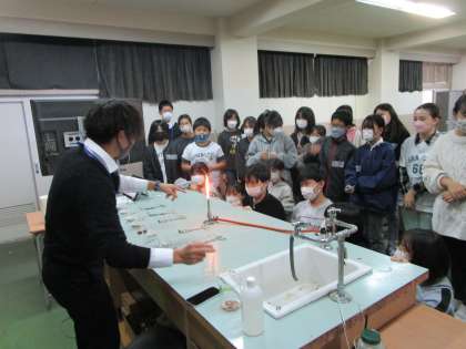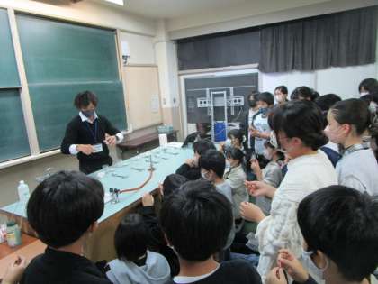 本日、3,4限に北条小6年生が北条中に来てくれました。さっそく、体験授業を行いました。写真は理科の授業です。