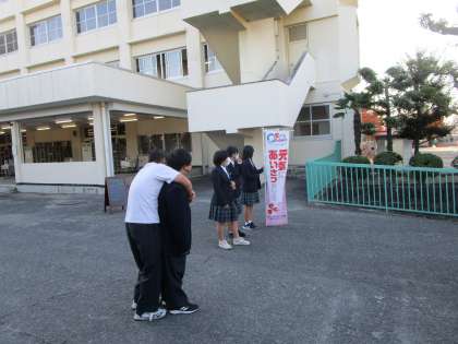 おはようございます。今朝は2年生の体育委員会もあいさつ運動参加です。ありがとう。
