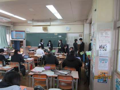 英語の先生と英会話の練習です。教室内で順番を待ちながら練習していました。楽しそうに話しているのがとても好印象です。すばらしい。