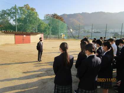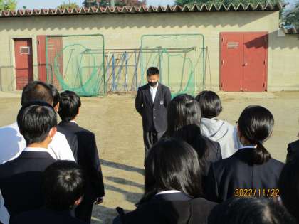 1年生もほぼ時間どおりにスタートしました。始めに先生二人から話があり、最後に学級委員から学年の取り組みについて話がありました。
