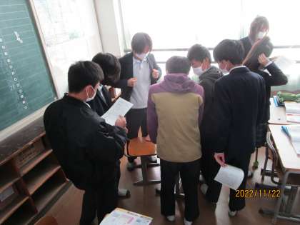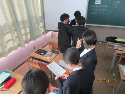 これは、教科書にある新聞の社説をもとに自分の意見をもち、それを最低3人の人と意見交流する場面です。驚くほどしっかりと自分の意見を述べていました。すばらしい。