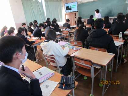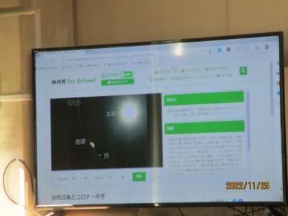 太陽についての説明がされていました。水素、ヘリューム、高圧などの言葉が聞こえていました。