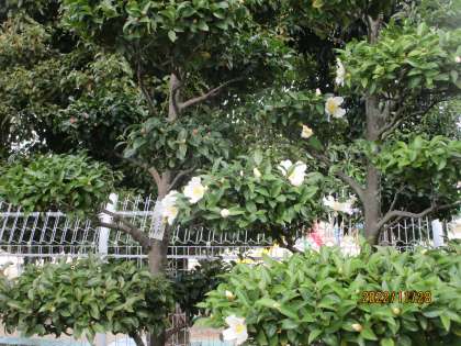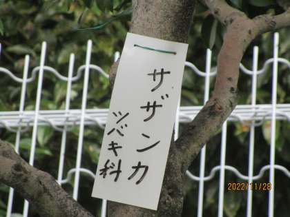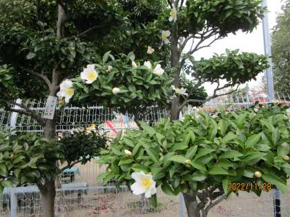 校門を入ったところに樹木が植わっています。その一本がこのサザンカです。冬を迎えようとしているこの時期、「サザンカ サザンカ咲いた道 たき火だたき火だ 落ち葉たき〜」の歌を思い出しました。美しい花です。
