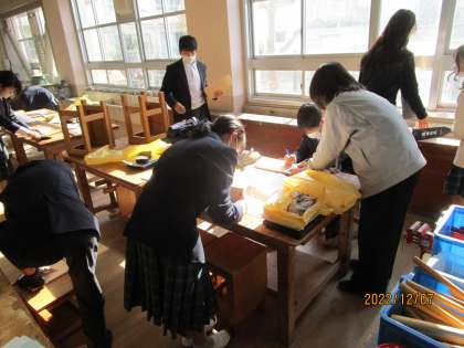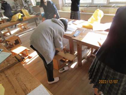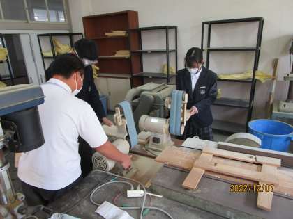 木工室で木を切り、サンダー(やすり)をかけているところです。ニトリや無印良品などに行くと、簡単な組み立て家具や衣装ケースもあって、自分で木を切って加工するという機会も減ってきたと思います。貴重な体験だし、自分で加工する喜びも知ってほしいです。